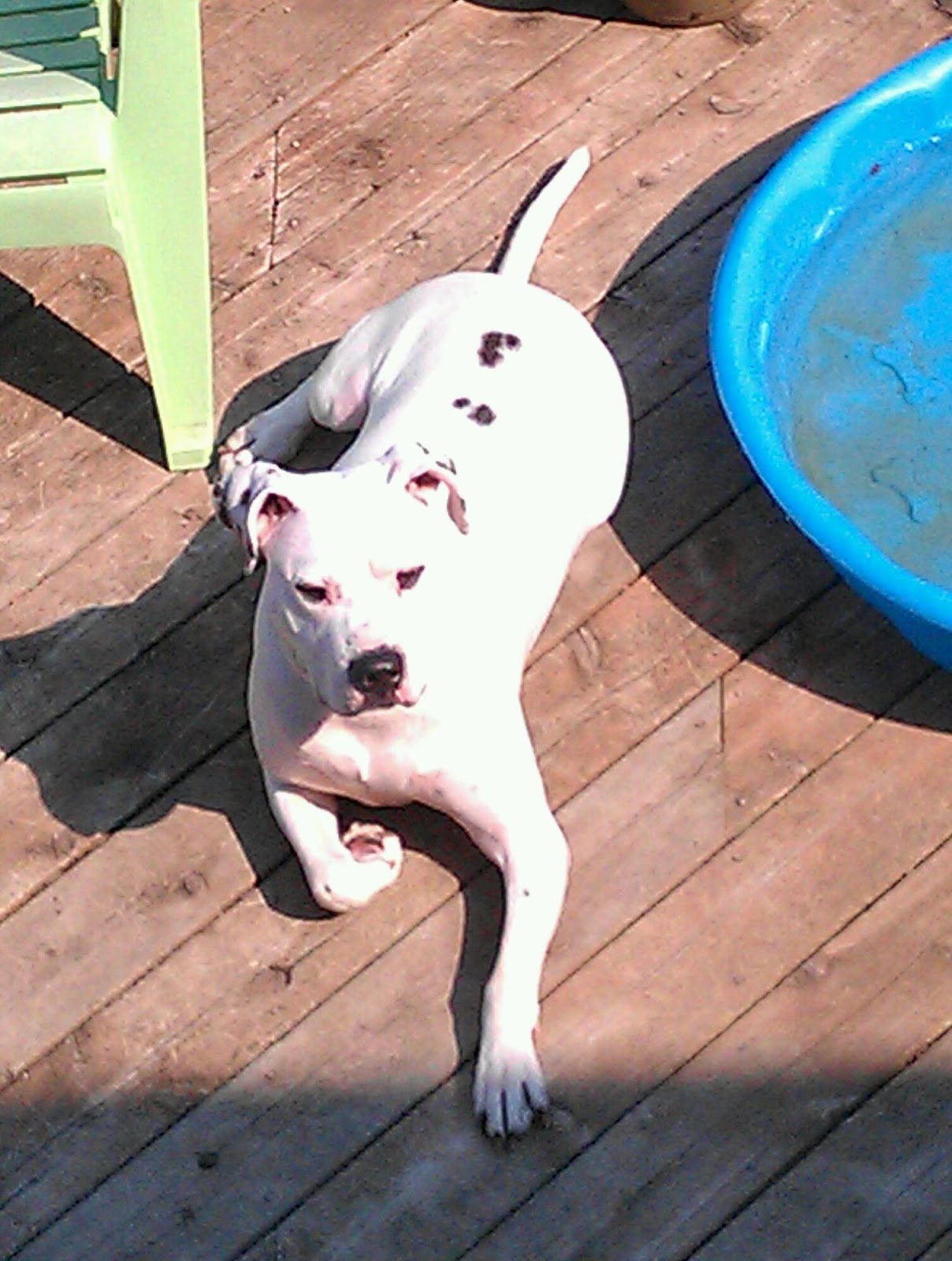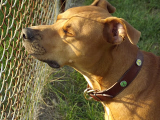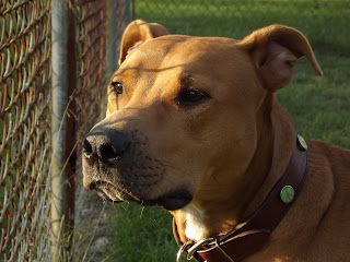 These are two pictures of Gumbo in August. He's relaxed a lot in the past four months. I can tell he didn't know a lot of love early in his life because it took him a long time to connect with us. Now, he has and he is an attention hound who thinks, at about 60 or 65 pounds, that he IS a lap dog. :)