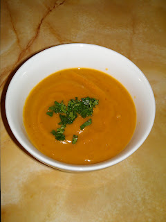 Creamy Avocado and Sweet Potato Soup. It was pretty tasty. I like a creamy soup now and again. It was a good way to use up the avocado that was reaching the end. In fact, I have an avocado and a sweet potato that I need to use. This would be an excellent soup for his week.